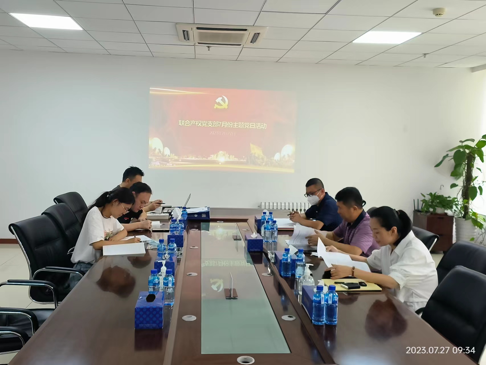 27日上午,聯(lián)合產(chǎn)權支部召開7月份主題黨日活動。支委會上,首先落實“第一議題”制度,研究審議二季度黨員積分量化情況等工作。召開集體討論查找問題專題會議,結合有關要求,集體討論查找問題并研究整改措施。