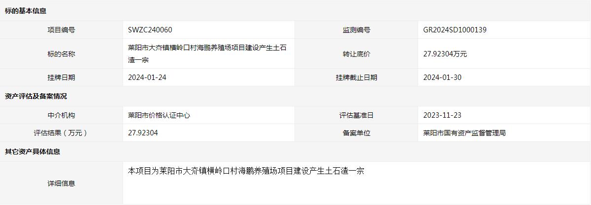萊陽(yáng)市大夼鎮(zhèn)橫嶺口村海鵬養(yǎng)殖場(chǎng)項(xiàng)目建設(shè)產(chǎn)生土石渣一宗