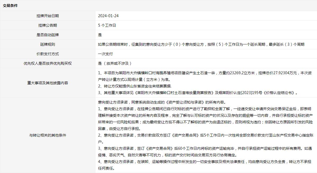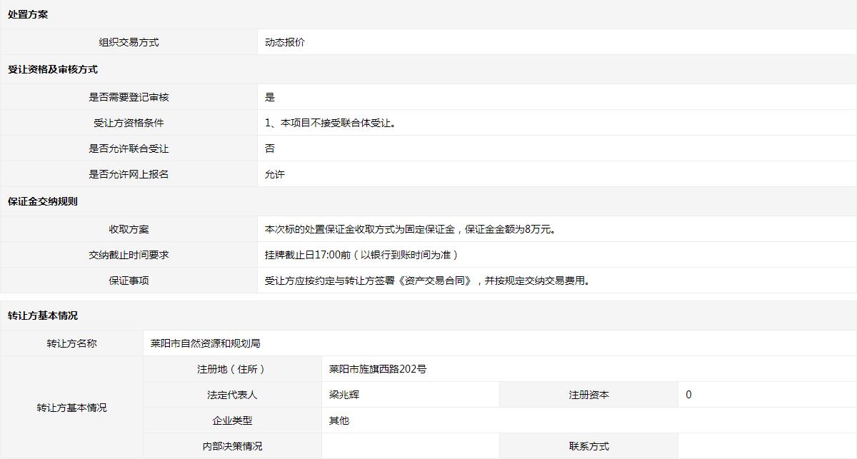 • 轉(zhuǎn)讓方:萊陽(yáng)市自然資源和規(guī)劃局