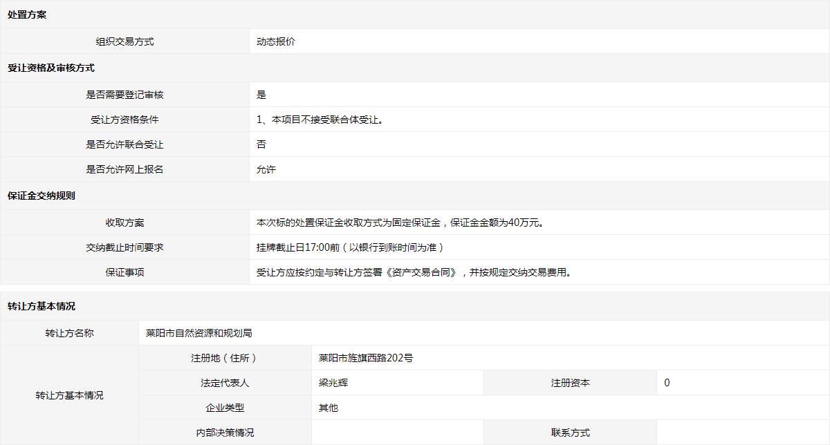 轉(zhuǎn)讓方:萊陽(yáng)市自然資源和規(guī)劃局