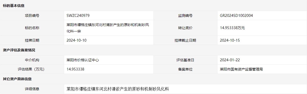 - 轉(zhuǎn)讓方:萊陽(yáng)市自然資源和規(guī)劃局