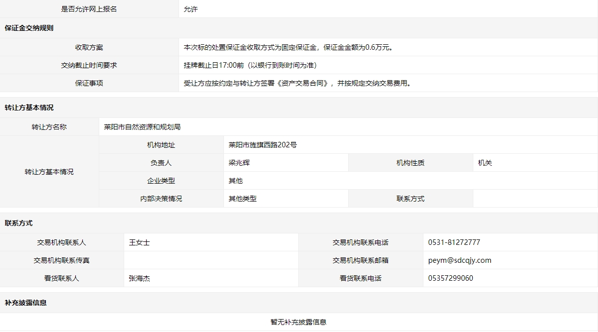 - 轉(zhuǎn)讓方:萊陽(yáng)市自然資源和規(guī)劃局