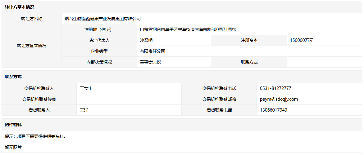 轉讓方:煙臺生物醫(yī)藥健康產業(yè)發(fā)展集團有限公司