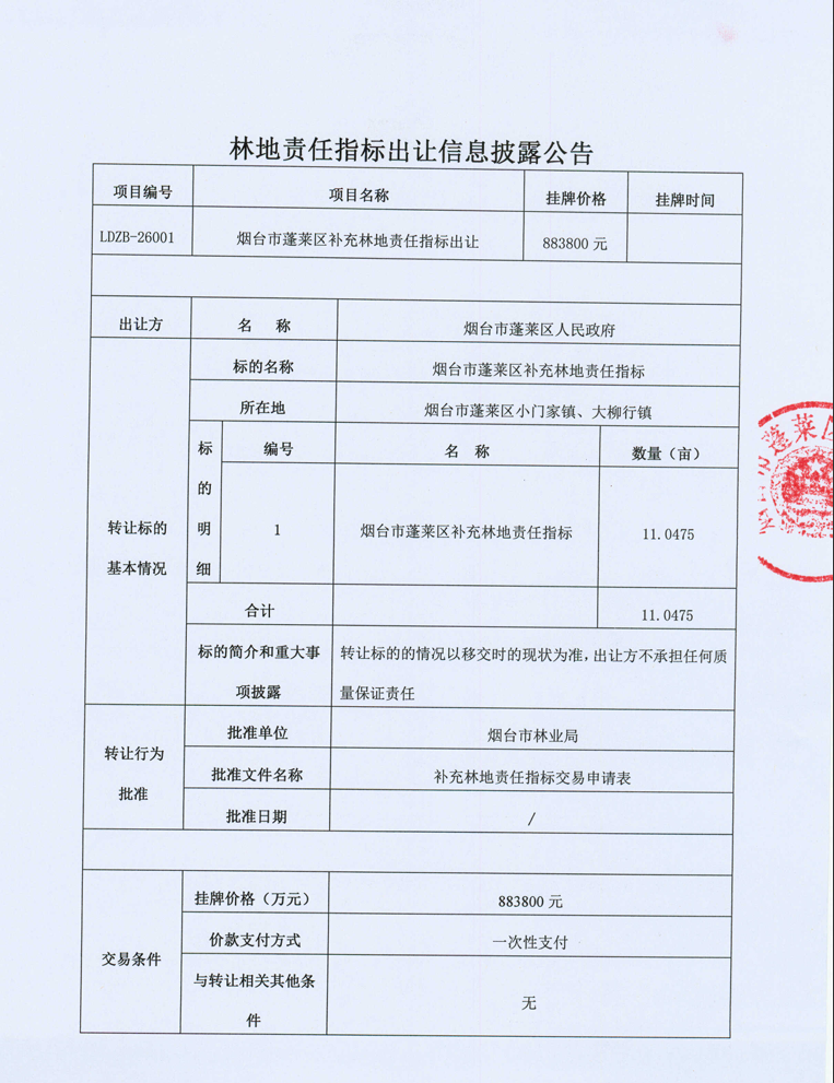 煙臺(tái)市蓬萊區(qū)林地責(zé)任指標(biāo)出讓(LDZB-26002)