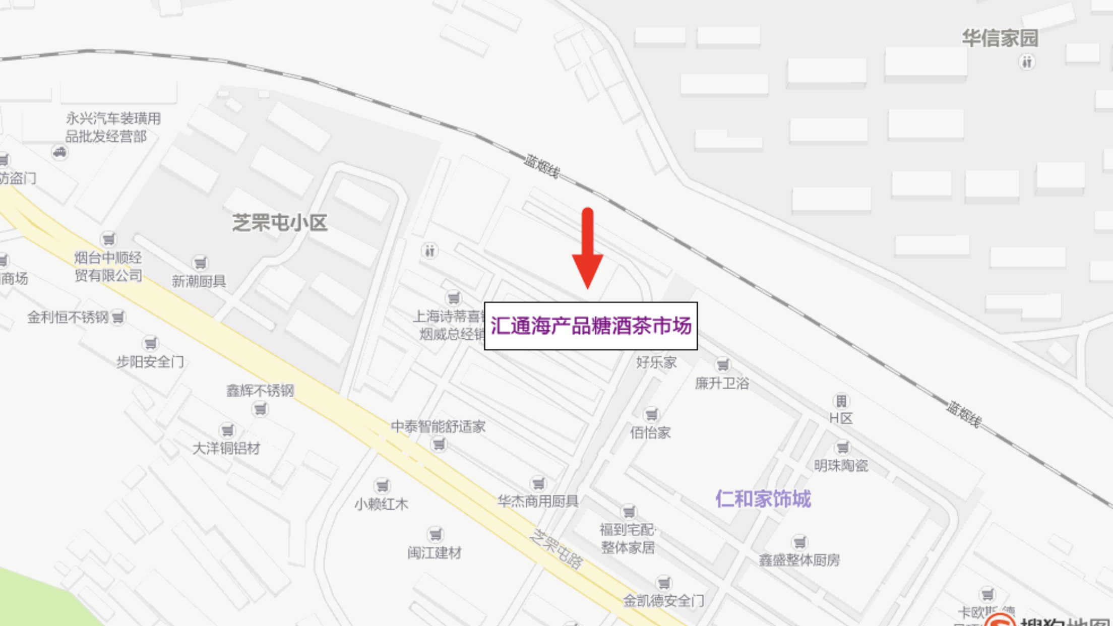 市場位于芝罘區(qū)芝罘屯路68號,總面積30000㎡,建有300多個(gè)標(biāo)準(zhǔn)營業(yè)網(wǎng)點(diǎn)和1000多平米專用低溫冷庫和一個(gè)物流配送業(yè)務(wù)區(qū),市場劃分為干海產(chǎn)品、糖、酒、茶經(jīng)營區(qū),匯集了膠東地區(qū)特色名、特、優(yōu)海產(chǎn)品,國內(nèi)的各類特色食品,是目前膠東地區(qū)從事海參、鮑魚等高端干海產(chǎn)品和婚慶糖果酒水批發(fā)規(guī)模大、品種全、價(jià)格優(yōu)、功能齊的專業(yè)批發(fā)市場,交通十分便利。